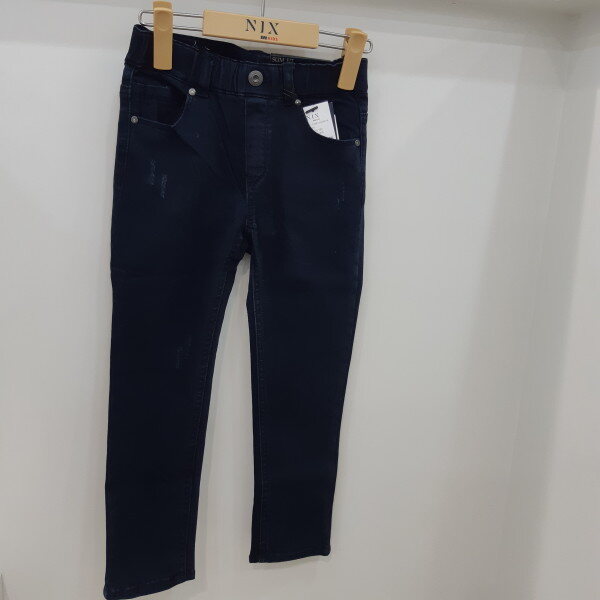 네이비컬러의 슬림핏면팬츠