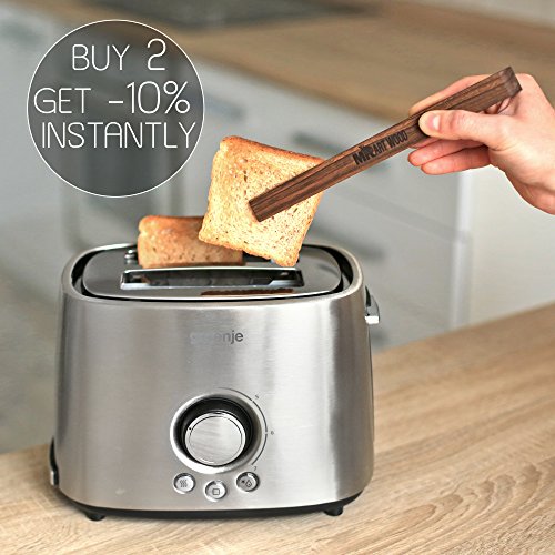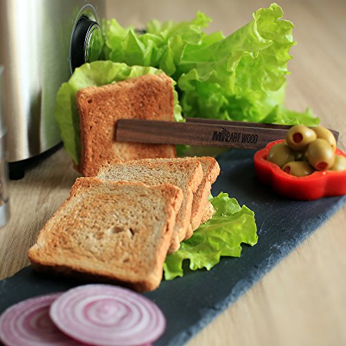 -Be it dining, serving or cooking area, these tongs look great and add to the aesthetic appeal of the place while being functionally effective -Strong enough to conveniently hold bread, bagels or bacon yet lightweight enough to be handled with ease -Wooden surface offers a good grip, both for the food and your hands -Made from natural walnut tree wood and offers an eco-friendly solution -No chemicals or lacquer coating, nor uses any glue - why introduce toxics into your food when the reason for choosing wood is health concern -A small magnet at the top helps in easy storage and quick access - stick to any metallic surface or magnetic strip -Sufficiently long length to help keep your hands at a safer distance -Doesn't scratch your non-stick cookwares or a toaster like a metallic tong which poses a significant risk -Durable build that is sure to last for way longer -Makes for an ideal gift for friends, family or colleagues who love cooking