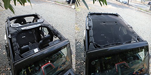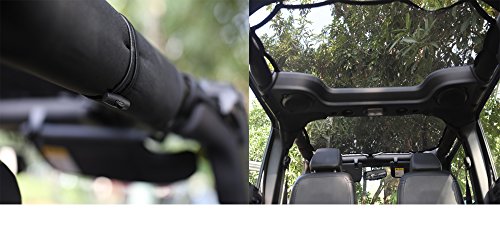 5.EASY TO INSTALL INSTALLATION:requires no tools or vehicle modifications. Includes 16 bungee cords that fasten around the roll bars for a snug fit. No need to remove your sunshade to add your hard top or soft top.