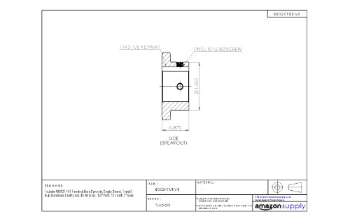 Tsubaki 40B12F-1 Finished Bore Sprocket, Single Strand, Hardened Teeth, Inch, #20 ANSI No., 1/2" Pitch, 12 Teeth, 1" Bore
