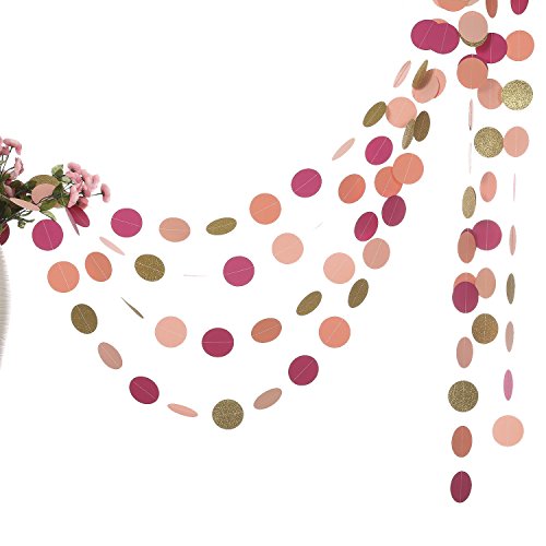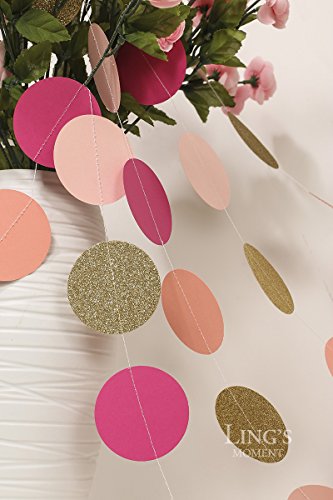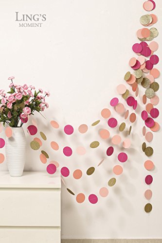 Ling's moment 4 x Circle Dots Paper Garland for Wedding, Bridal Showers, Birthday Party, Baby Shower, Event & Party Supplies, (Gold Glitter, Pink, Coral) 2.5" Dots