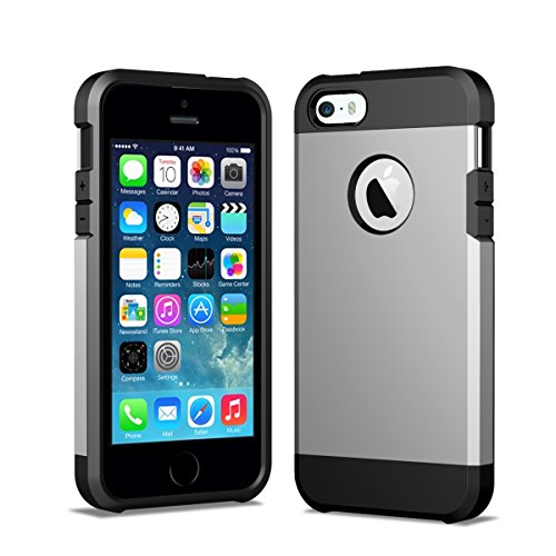 iPhone 5S Case, Breett Two-Layer Slim Protective Cover Case for iPhone 5/5S (Silver)