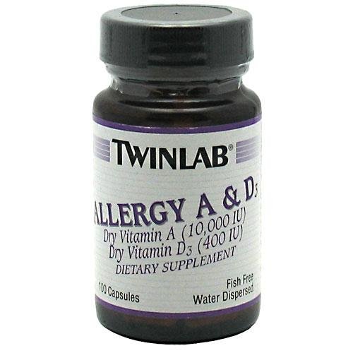 -. Binding : Health and Beauty -. Brand : Twinlab -. Department : unisex-adult -. EAN : 0027434005012 -. Feature : Allergy A & D Caps are designed specially for fish and fish oil allergic individuals / Twinlab -. IsAdultProduct : 0 -. IsAutographed : 0 -. IsMemorabilia : 0 -. Label : Twinlab -. LegalDisclaimer : * These statements have not been evaluated by the Food and Drug Administration. This product is not intended to diagnose, treat, cure or prevent any disease. ** Always refer to the manufacturer's label on the product for description, recommended dose and precautions. -. Manufacturer : Twinlab -. Model : 125 -. MPN : N/A -. NumberOfItems : 1 -. PackageQuantity : 1 -. PartNumber : N/A -. ProductGroup : Health and Beauty -. ProductTypeName : HEALTH_PERSONAL_CARE -. Publisher : Twinlab -. Size : 100 -. Studio : Twinlab -. Title : Twinlab Allergy A and D -- 100 Capsules -. UPC : 027434005012