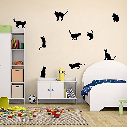 Amaonm® Removable DIY Cute Cartoon Black Cat Wall Decor Kids room Wall Sticker Lovly Playing Cat Wall Decals Peel Stick FOR Girls Children Bedroom...