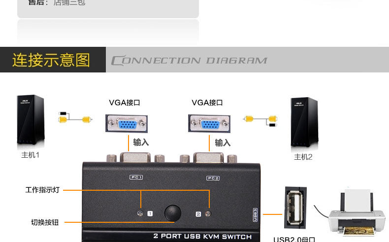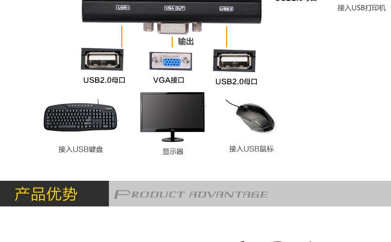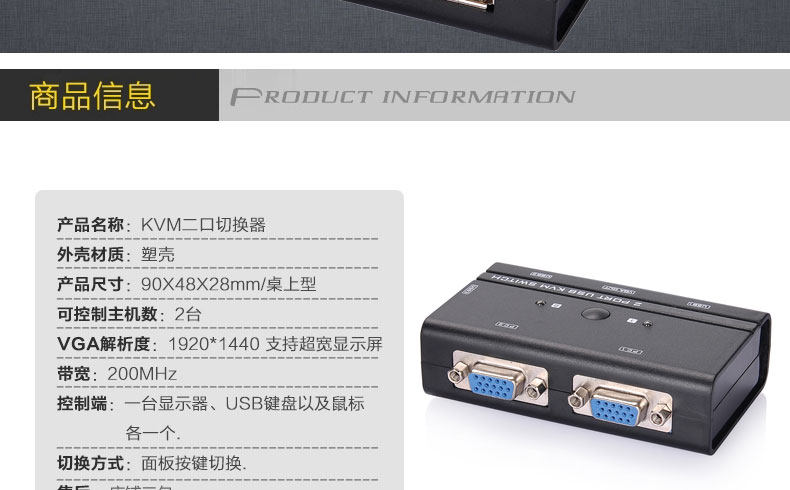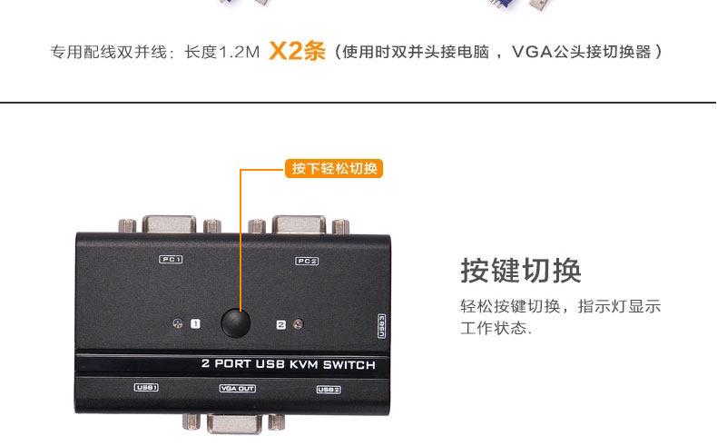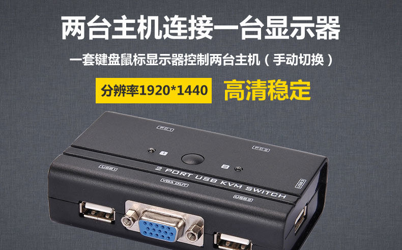 kvm 切换器 2 口 usb 2进1出 控制器 键盘鼠标 2路 显示器共享器