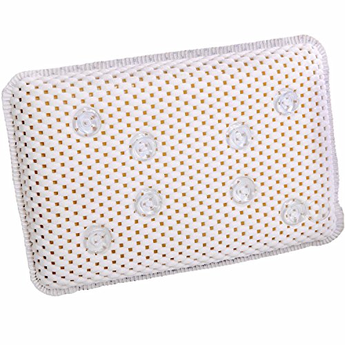 -. Feature : Comfortable head rest in bathroom, Dimensions - 11.5" x 7.5" x 2.25" / Cushion is made of premium quality comfortable and soft mesh material, and waterproof semisoft foam thus providing long lasting comfort. / 8 suction cups that hold up the pillow in place, its guaranteed to keep the pillow to stay put and not shift away. / Easy product care - Just rinse and air dry since its made of quick drying mesh. Odor resistant, Will not get moldy / Guarantee - We offer you satisfaction guarantee to let you buy with confidence, no questions asked. If you are not totally happy just return it hassle-free for a full refund.