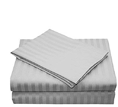 100% Pima Cotton 1-Piece Fitted Sheet & 2- Piece Pillowcases with 6-10 inches Extra Fit Deep Pocket Both Pattern Solid/Stripe 500 Thread Count (Full , Stripe , Light grey).