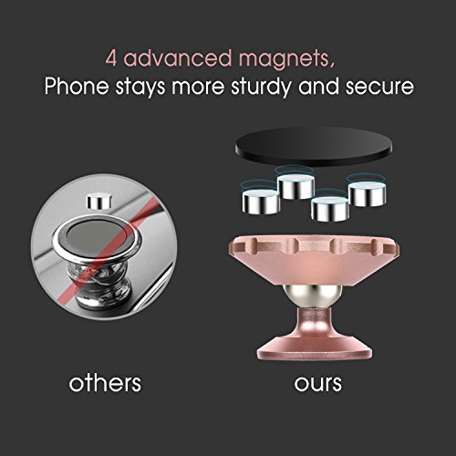 Magnetic Car Phone Mount - TFZ Universal Highly-Adjustable Car Phone holder with 4 Powerful Magnets for iOS or Android Smartphone and GPS devices (Rose Gold)