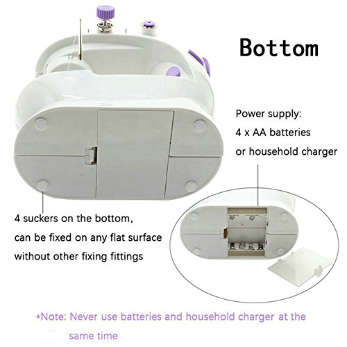 ★ Portable sewing machine equips double thread for neat and straight stitches. The speed can also be adjusted from low speed to high speed. You can use either household socket or batteries as the sewing machine’s power source.