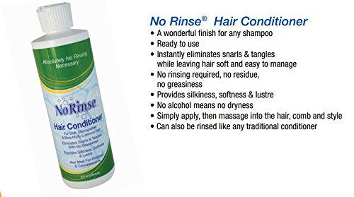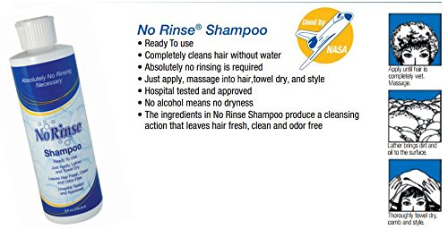 Studio : Clean Life Publisher : Clean Life Binding : Health and Beauty Product Description NO RINSE SHAMPOO HAIR CONDITIONER NO RINSE SHAMPOO Ready To Use Completely Cleans Hair Without Water Absolutely no rinsing is required Just apply, massage into hair,towel dry, and style Hospital tested and approved No alcohol means no dryness The ingredients in No Rinse Shampoo produce a cleansing action that leaves hair fresh, clean and odor free NO RINSE HAIR CONDITIONER A wonderful finish for any shampoo Ready To Use Instantly eliminates snarls tangles while leaving hair soft and easy to manage No rinsing required, no residue, no greasiness Provides silkiness, softness lustre No alcohol means no dryness Simply apply, then massage into the hair, comb and style Can also be rinsed like any traditional conditioner 0