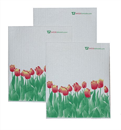 -. Title : Swedish Dishcloth - Orange Tulips - Set of 3