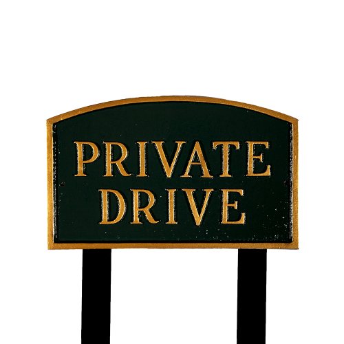 Montague Metal Products SP-12S-HGG-LS Standard Hunter Green and Gold Private Drive Arch Statement Plaque with 2 23-Inch Lawn Stakes