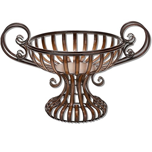 Urban Designs 7787347 Decorative 16" Mykonos Metal Bowl with Handles, Bronze