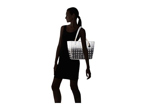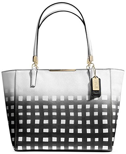 Coach Madison East/west Tote in Gingham Saffiano Leather White/ Black