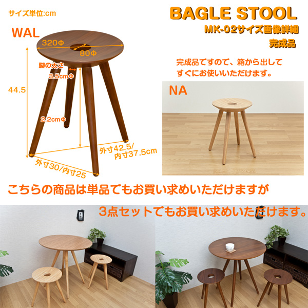 こちらは「丸型スツール(BAGLE) 【1脚】 高さ44.5cm 木製 ウォールナット 【完成品】」の商品ページです