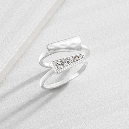 -. Feature : Take center stage with the Spotlight Stack Rings, featuring two separate sterling silver rings: one with Swarovski crystals and the other polished sterling silver that allow you to style based on your desired look / LAYERED UP: Delicate looks that, when layered together, pack a huge style punch! Subtle sterling silver necklaces and stackable rings can be worn alone for a dainty, everyday look or layered on top of one another for a statement-making look with minimal effort. Try wearing necklaces with varying lengths for a trendy graduated effect or stack rings on the same finger for an instant dose of glam. / SWAROVSKI CRYSTAL: SwarovskiÕs high-precision crystals go through a stringent quality assurance program that ensures unparalleled clarity, strict color range tolerances, and ever gorgeous crystals / STERLING SILVER: SilpadaÕs signature metal is known amongst jewelry wearers for its strength, brightness, shine, and decreased risks of allergic reactions and tarnish residue on skin / Ring face measures 1/8 inches in width