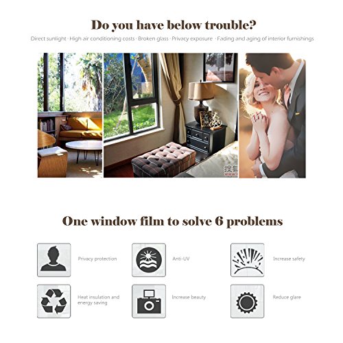 Windows bring sunlight in but also cause cooling cost. WochiTV Window Films can reduce energy loss and lower cooling costs by up to 30 percent. Also it can block annoying glare and reject UV to reduce fading protect interior furnishings. Privacy protect - A suitable privacy film, effectively reduce glare, widely used in dining room, kitchen, bedroom, office and etc. Infrared blocking Anti-UV - It is a sun blocking window film, not only reduce time of using air conditioner, low-carbon, energy saving, but also protect your interior furniture. No glue -? This removable window film is made from earth friendly PVC, thickness of 0.15mm, clear and bright, no need glue when applying. Easy to use - Static cling film, applicable to any smooth or flat glass surface, like window, sliding door, balcony, protecting the glass from damage. Remarks: Single plane fluoroscopy: One-way perspective refers to the strong light intensity side can't see the dark side of the light, which means when indoor light is stronger than outdoor, people outside can see people inside. In general, people outside can't see people inside during daytime. Reflect light inside: Refers to the glass shine like a mirror when evening indoor light is strong, the outside glass shine like a mirror during daytime. Peel off the backing transparent protective film, paste the film to the window and use your hand to press it from the top down so that it can tightly attach to the surface, put protective film on window film before squeegee away water and air bubbles, prevent damaging window film. Package: - Window film x 1
