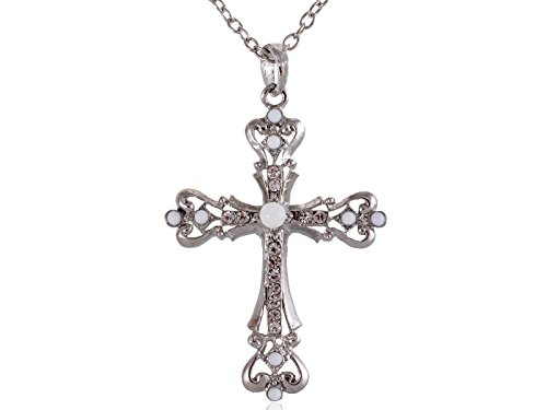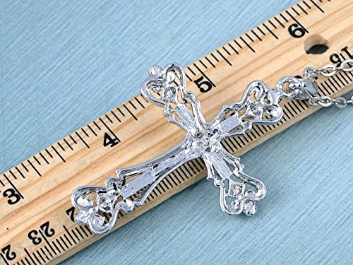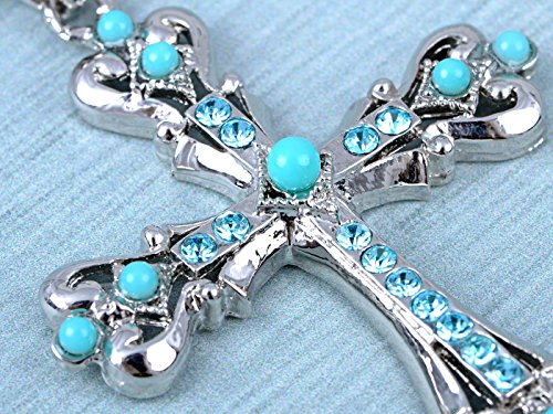 -. Title : Alilang Silvery Tone Synthetic Turquoise Crystal Rhinestone Holy Cross Pendant Necklace