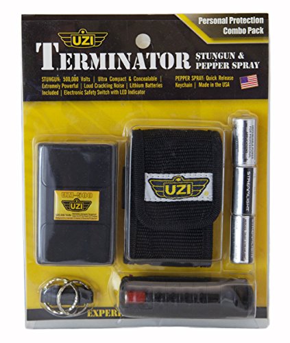 Uzi 500000-volt Stun Device and 1/2-Ounce Self-Defense Pepper Spray Combo, Black