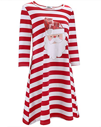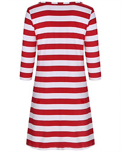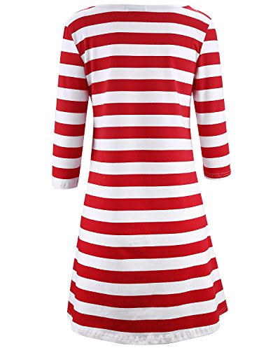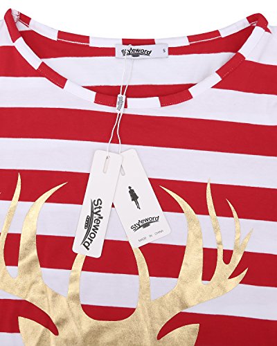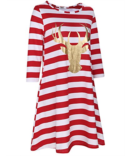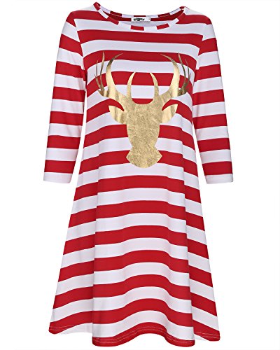 Styleword Women's Three Quarter Sleeve Christmas Dress Stripe Elk Casual Dress(Floral01,L)