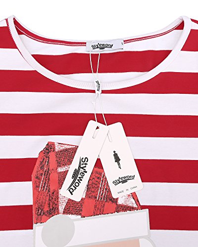 Styleword Women's Three Quarter Sleeve Christmas Dress Stripe Elk Casual Dress(Floral02,S)