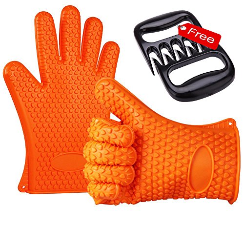JYHY Barbecue Gloves & Pulled Pork Claws Set ,Cooking Gloves Germ & Heat Resistant, Sure Grip Silicone, BBQ Safe, Waterproof, Dishwasher Safe,0range