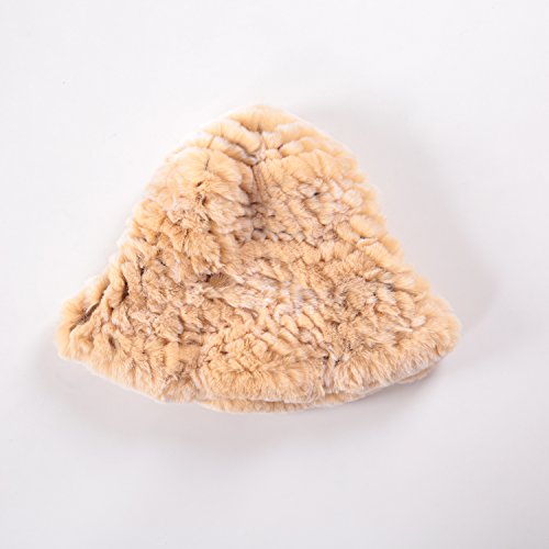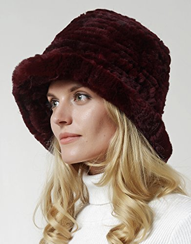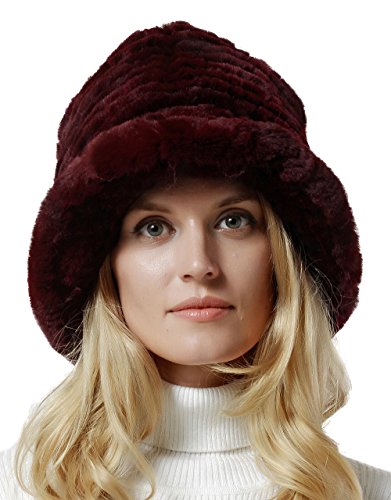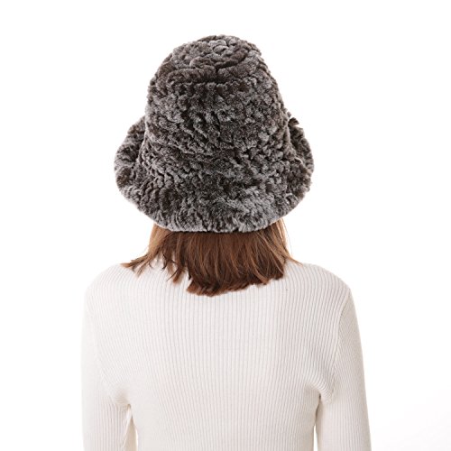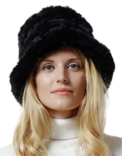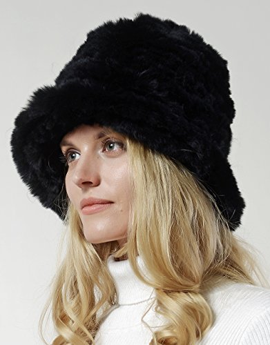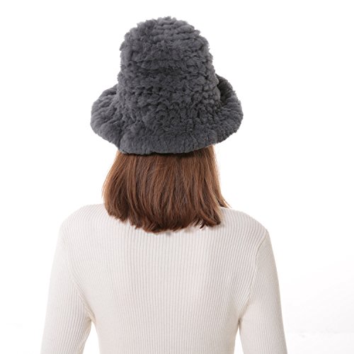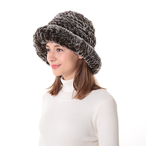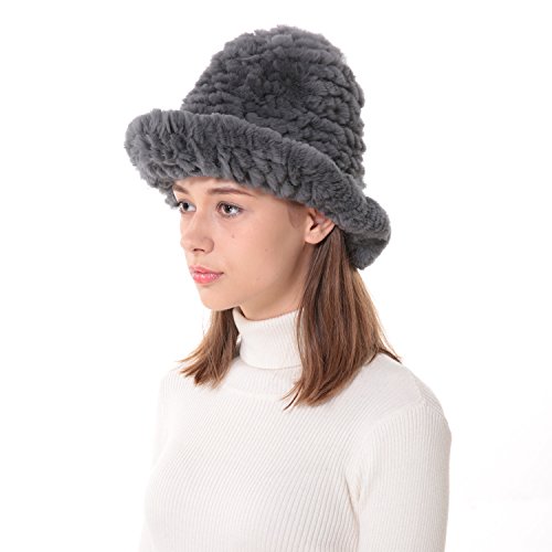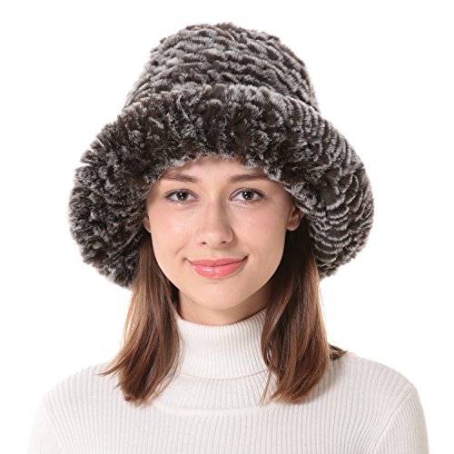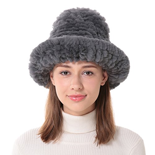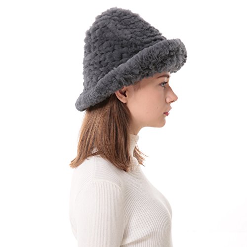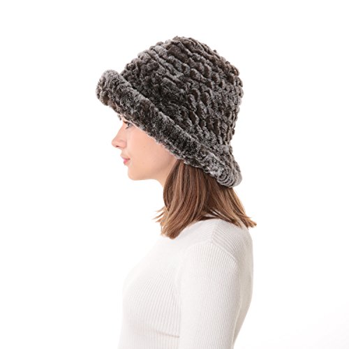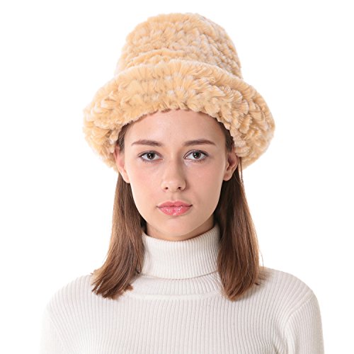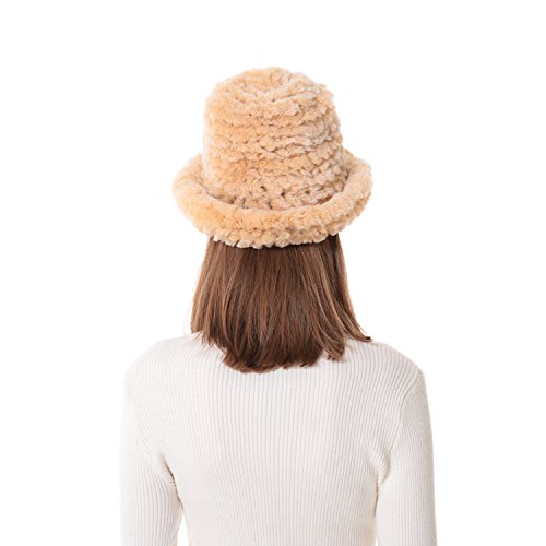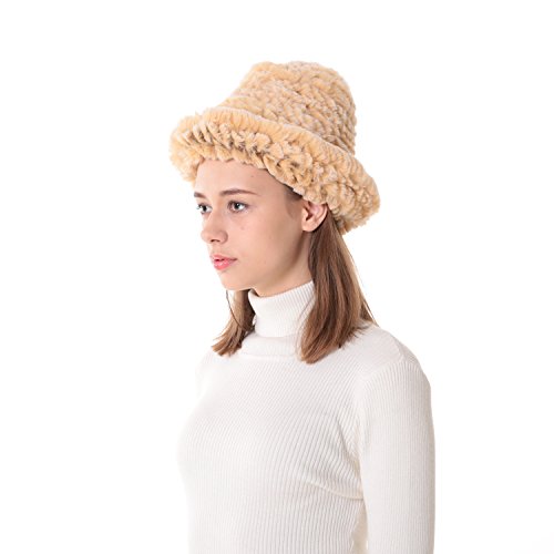 Nice Glory Women's Rex Rabbit Fur Folded Brim Knit Bucket Hat