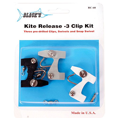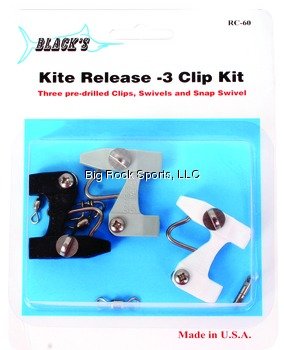 Product DescriptionBlack's Release Clips thread on fishing kites or downriggers lines and held in place with a crimped sleeve, split shot, barrel swivel or knot.0
