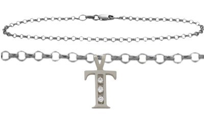 -. Title : Diamond Initial T White Gold Charm Anklet