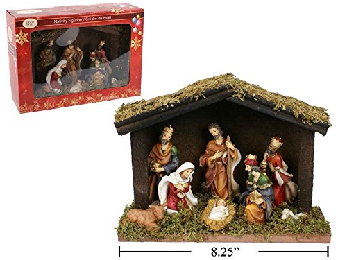 - Nativity Set of 8 with a Wooden Barn and Creche Look. Comes with inside a Gift Box