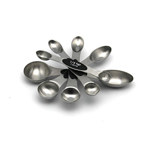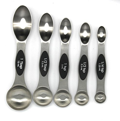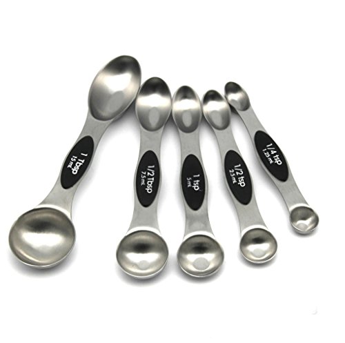 - Set of 5 stainless steel magnetic spoons: 1/4 tsp, 1/2 tsp, 1 tsp, 1/2 Tbls, 1 Tbls