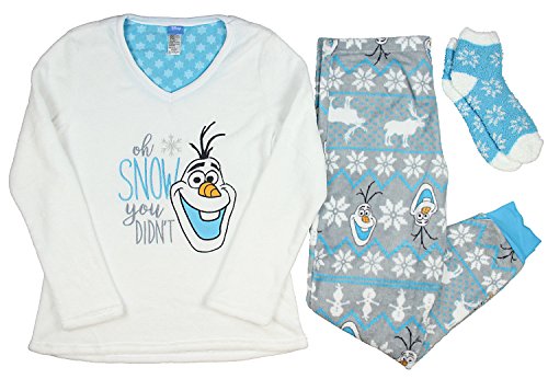 Fashion Disney Frozen Olaf White 3 Piece Fleece Pajama Sleep Set w/Socks - Large