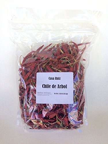De Arbol Chile - Mexican Whole Dried Arbol Chili Peppers - 1 Lb Resealable Bag - Casa Ruiz Brand - Tannic Smoky Grassy Bold Spicy Fiery Heat - Mexican Related to Cayenne or Pequin - Pico De Pajaro -