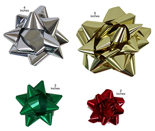 Product Description 120 metallic bows with Christmas theme colors. 1 inch size is great for small packages, like ring boxes, or crafting. Peel and stick backing. Colors Include: Fuscia, Blue, Silver, Gold, Green, and Red 0