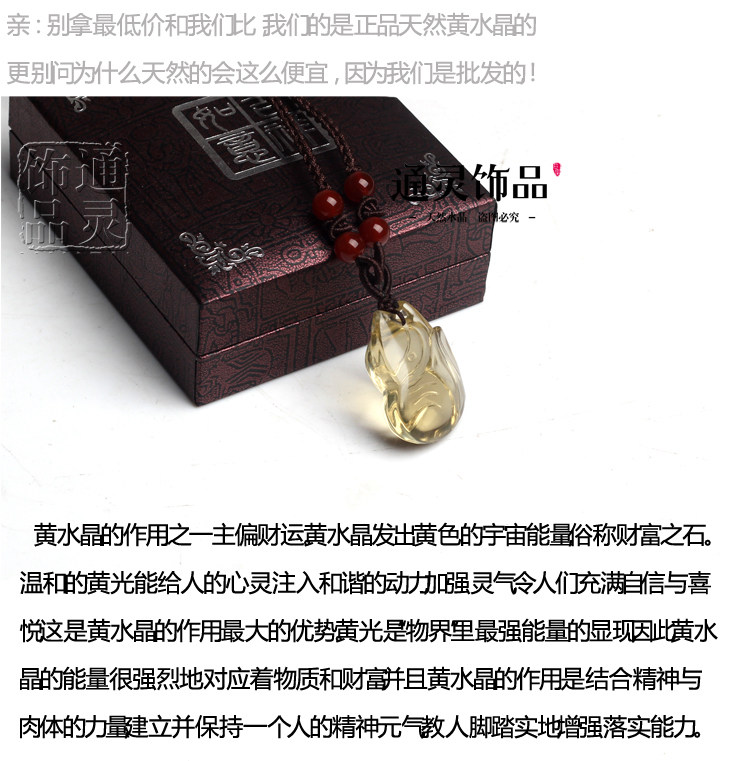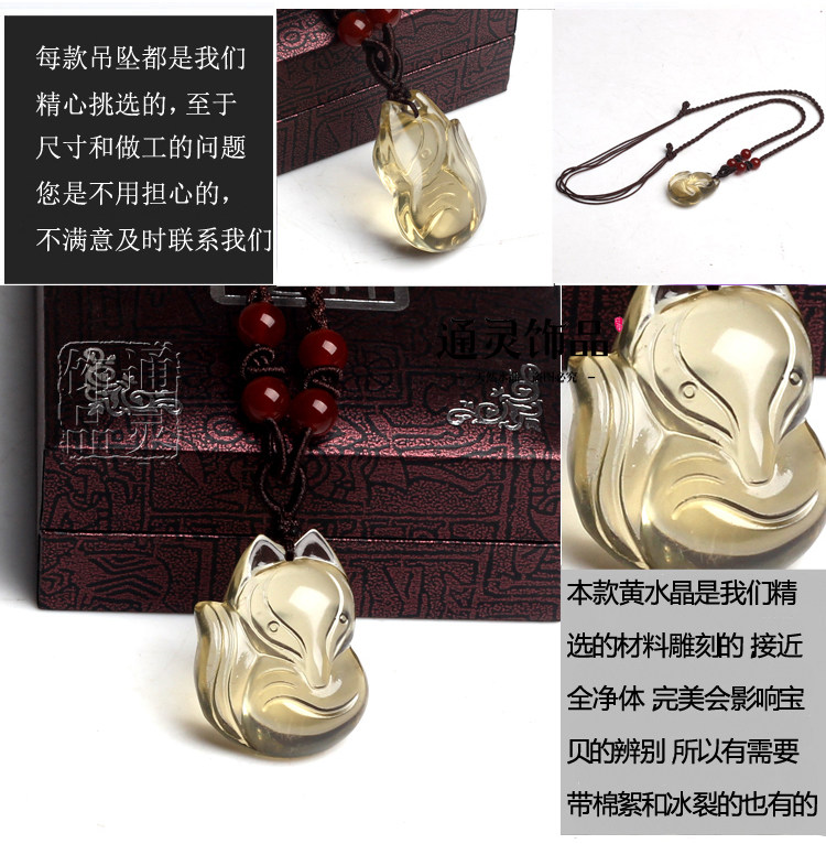 开光纯天然黄水晶狐狸吊坠/项链黄色水晶情侣挂件 转运招财礼物