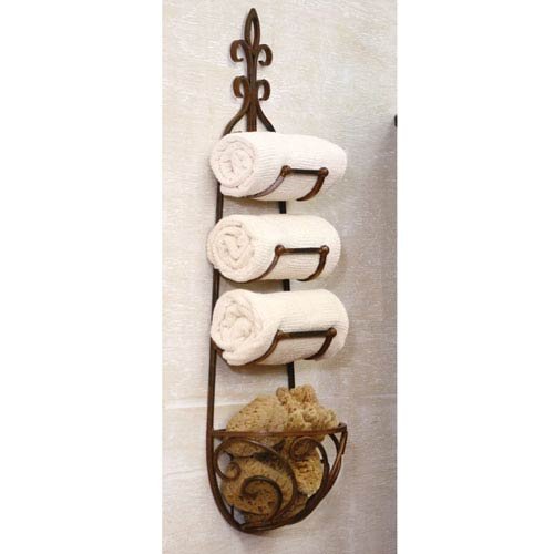 Kalalou CQ1024 Rustic Iron Hanging Towel Rack w/ Basket