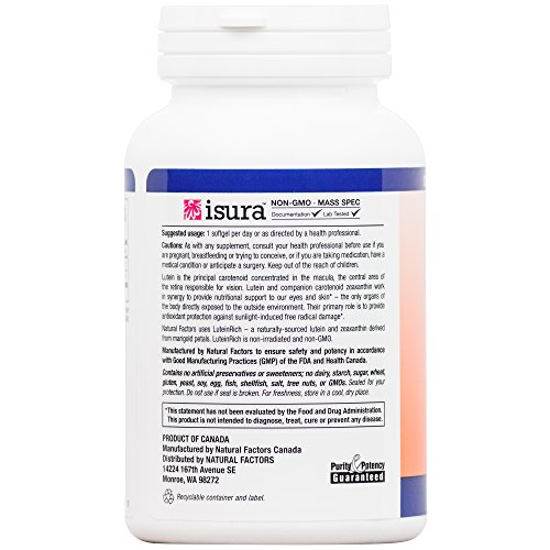 NATURALLY SOURCED LUTEIN: Natural Factors uses LuteinRich, a naturally-sourced lutein and zeaxanthin derived from marigold petals. LuteinRich is non-irradiated and non-GMO.