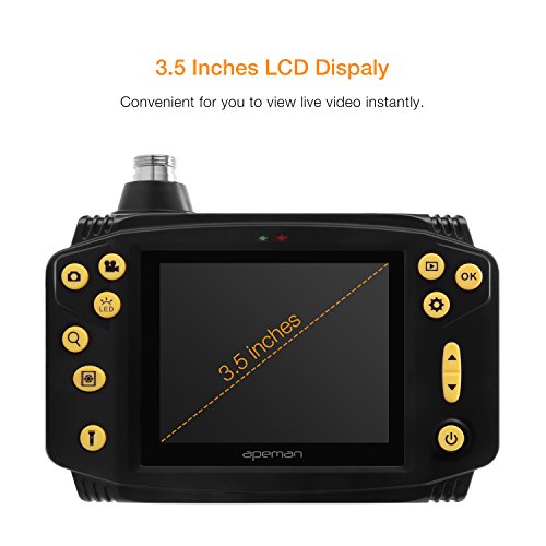 APEMAN Video Borescope Industrial Inspection Camera Waterproof 3.5 inches LCD Screen with 6 Adjustable LEDs and 8.5mm Flexible Probe