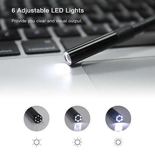 【Visual and clear capture】With 6 adjustable LED lights, the 5.5mm diameter probe provides you crystal clear and visual output in hard-to-reach dark areas.