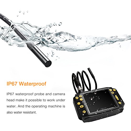 【Multiple working conditions】IP67 waterproof probe and camera head make it possible to work under multiple circumstances: under water, gaps and holes with small openings. Also an integrated flash light for dark area working assistance.