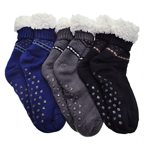 Thermal Fleece-lined Cozy Crew Socks Extra Thick, with Brushed Interior Super Comfortable and Warm. These amazingly cozy winter crew socks have a super thick fleece interior to keep your feet extra cozy and warm on cold winter days. The socks has non-skid bottoms to prevent slipping and sliding.