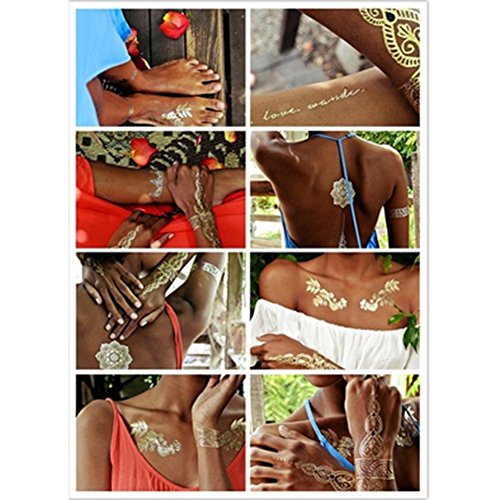 - ❀Quality metal temporary tattoos will last a few days, keeping their flash and sparkling appearance. Not to mention, they are waterproof.