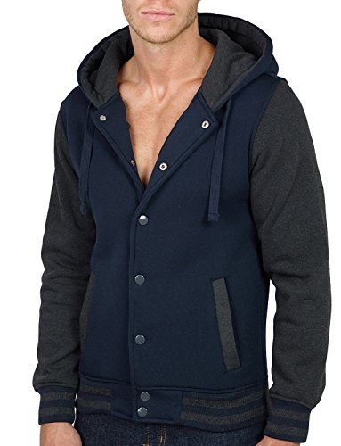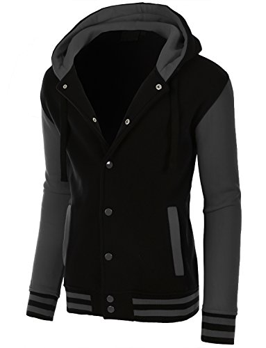 Binding : Apparel Product Description This varsity baseball bomber jacket with hoodie is a favorite. Throw this jacket over a casual t-shirt and denim jeans for a more fashion forward design. It is a must for every season. Sizing Info L3NMJC254 / L3NMJC256 / L3NMJC1009 / L3NMJC307 - Small- Length: 26in Chest: 36in Sleeve: 22in Shoulder: 18.5in