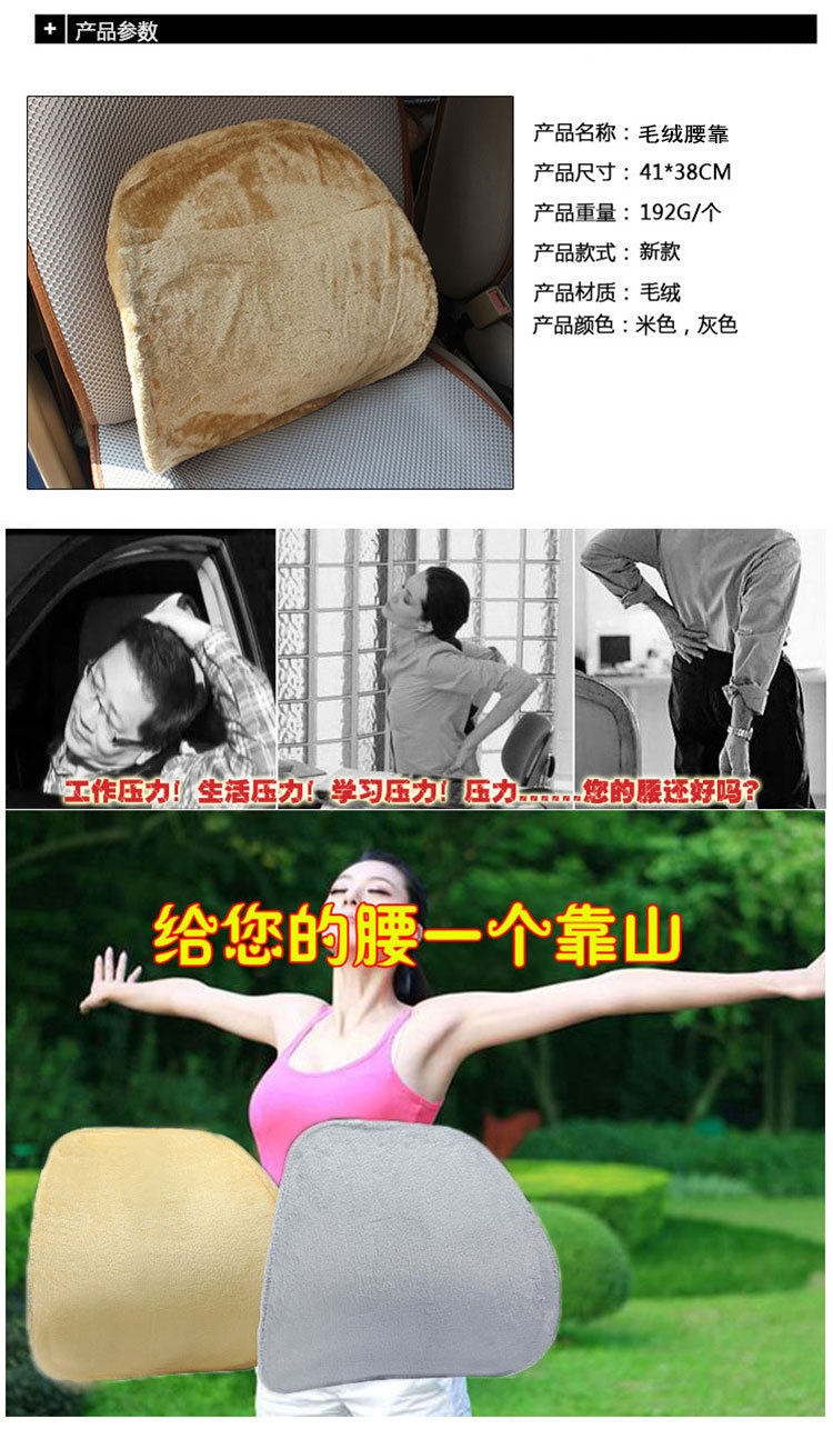汽车腰靠贴合人体腰部,给予人体良好的支撑,有效缓解长时间开车带来的腰部劳累和疲倦,靠垫对人体没有压迫点,对腰椎疼痛有着很好的缓解作用。可以带给人们一个轻松、舒适的开车氛围。外形可爱的汽车腰靠,还可以起到装饰的作用。而且家居,汽车,办公都可以用的哦!
