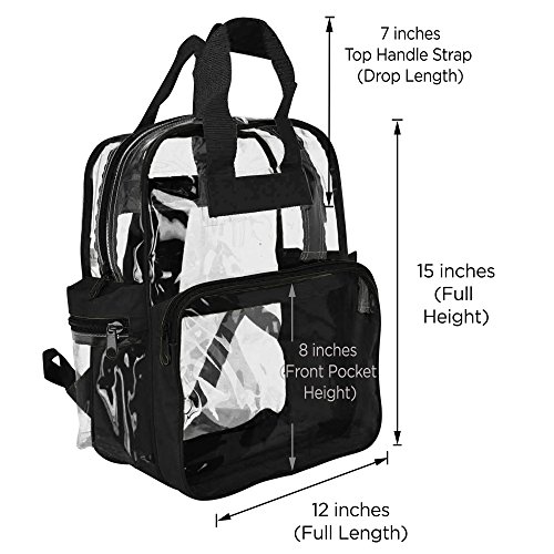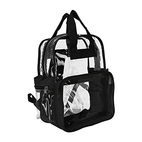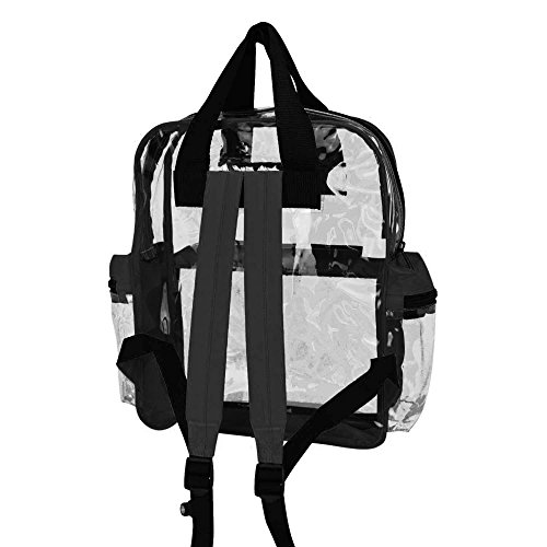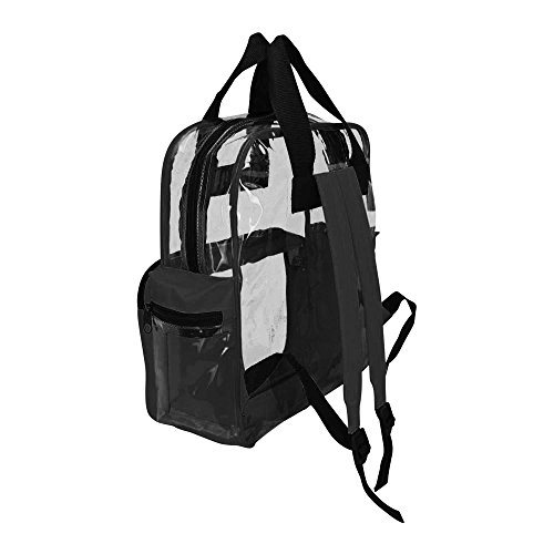 This Backpack is great for a children and kids, school and small picnic daypacks. The completely see through material allows for viewing of what is inside from the OUTSIDE! It is both lightweight at 14.5 Ounces (slightly under a pound) and perfect for those of you who hate a heavy carrying bag. Comes with dual straps to disperse weight and great for hiking and trips to the beach. MATERIAL: Heavy clear vinyl/ 600D Polyester SIZE: 12" X 15" X 6" FEATURES: Large main compartment, two zippered pockets. COLORS: Clear and Black.Feature