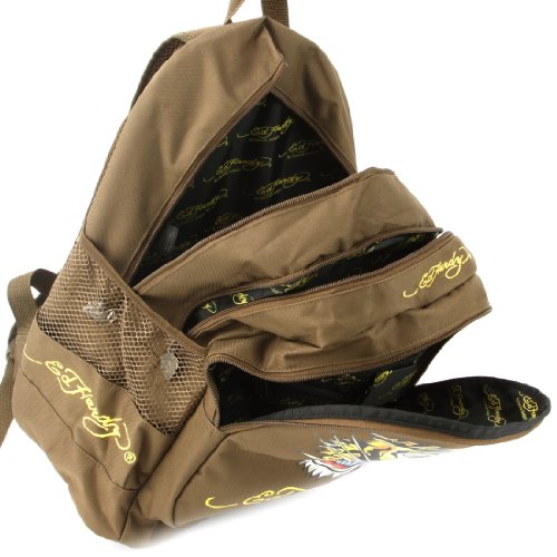-. Brand : Ed Hardy -. Department : boys -. Feature : three Large zip compartments / Ed Hardy tattoo All Over P.R.Int, Two side mesh holders / Padded mesh Adjustable shoulder straps / Top handle for easy carrying, Fully lined interior / 12 x 17 x 8" (WxHxD) -. Model : 1A1A1AOC -. ProductGroup : Apparel -. ProductTypeName : LAGE -. Title : Ed Hardy Bruce Backpack with Tattoo P.R.Ints