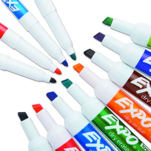 EXPO Low-Odor Dry Erase Markers, Chisel Tip, Assorted Colors, 15-Piece Set