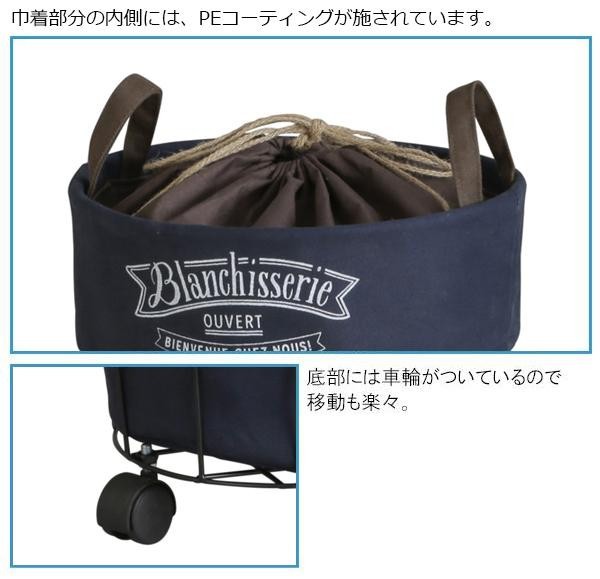お店で使われるアイテムをイメージしたラウンドカート。厚みのあるキャンバス生地にPEコーティングを施しているので、丈夫で長く使えます。 |