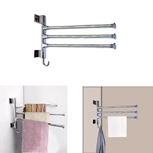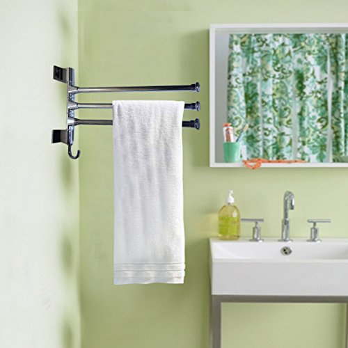 Chrome Bath Towel Rack 3 Tier Rod Hnaging Hardware Included Includes extra hook on bottom for robe or smaller towles