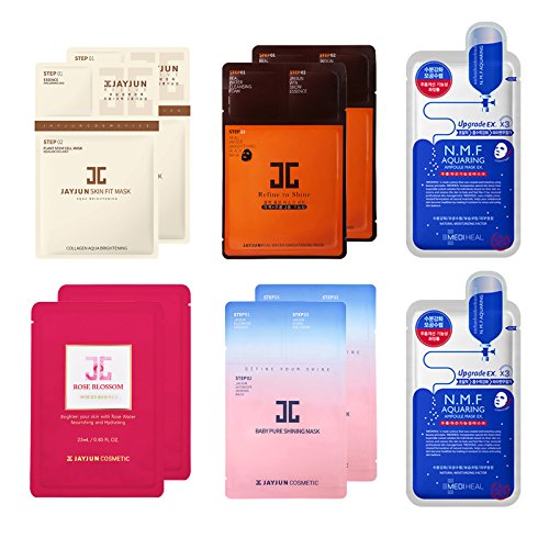 -. Feature : JAYJUN Real Water Black Facial 3 Steps Mask 2pcs / Baby Pure Shining 3 Steps Mask 2pcs / Skin Fit Aqua Brightening 2 Steps Mask 2pcs / Rose Blossom Mask 2pcs / Mediheal N.M.F Aquaring Ampolue Mask 2pcs / Keep Your Skin Healthy Glow / Anti-Wrinkle, Whitening, enhance skin resilience / Moisturizing Essence helpful for the dry and dull skin / Enhance Moisturizing & Nourishing Effects